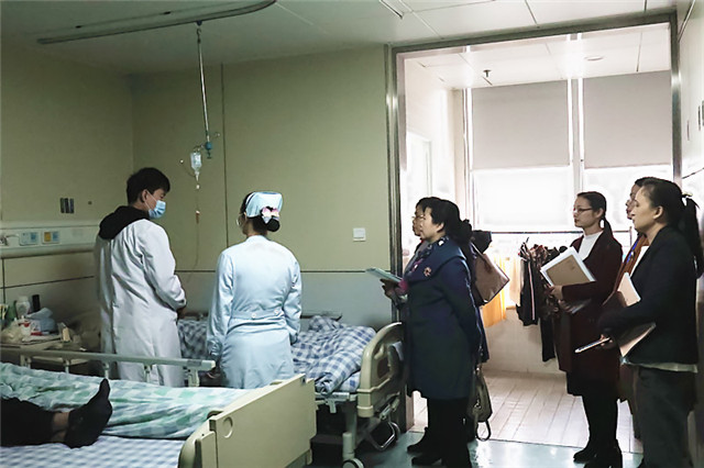 调研组一行逐一走访目前正在我院临床实践的2017级护理学位研究生,了解他们的临床实践情况。随后与部分带教老师座谈交流,了解学生实践教学情况、实践轮转安排、实践教学管理以及在医院的综合表现等情况。