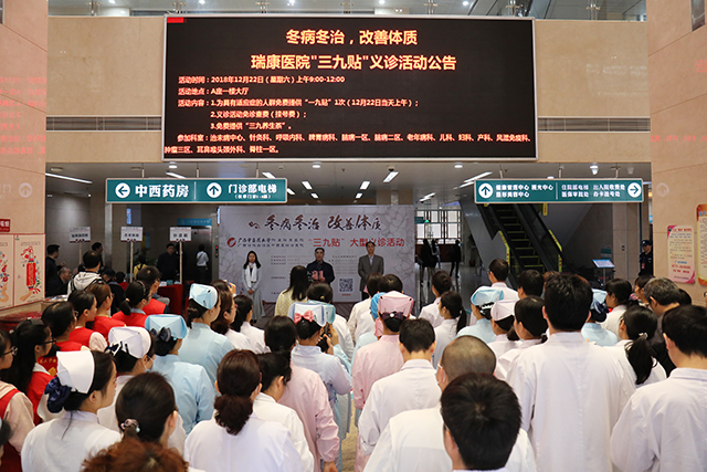 冬日的邕城温暖依旧,瑞康的温情感动持续,12月22日冬至时节一大早,为普及冬季养生知识,改善人民群众体质,展现中医药文化,我院在A座一楼门诊大厅举行“冬病冬治,改善体质——广西中医药大学附属瑞康医院免费贴敷‘三九贴’义诊活动”,治未病中心、针灸科、呼吸内科、脾胃病科、脑病一区、脑病二区、老年病科、儿科、妇科、产科、风湿免疫科、肿瘤三区、耳鼻喉头颈外科、脊柱外科一区等14个科室医护人员现场为800余名群众免费贴敷“三九贴”之一九贴。医院院长唐友明,党委副书记、副院长陈日兰,副院长陈锋出席活动开幕式。
