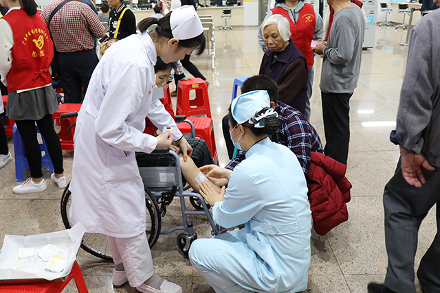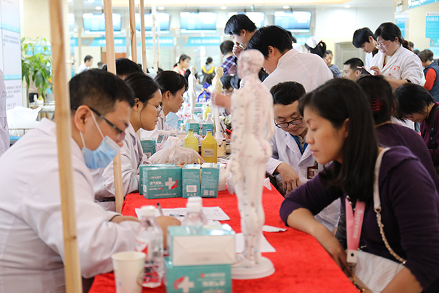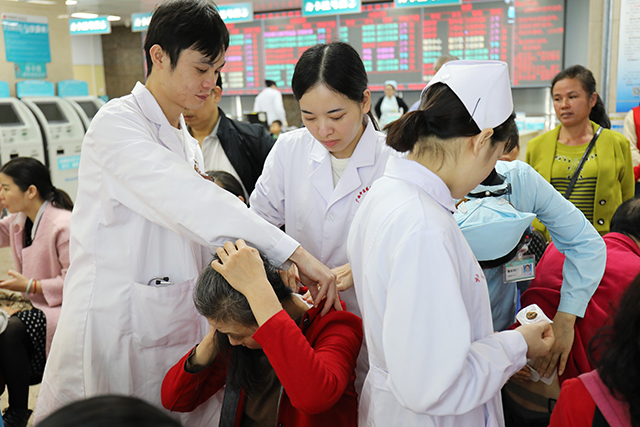 随着唐友明院长宣布活动开始,各科室医务人员或站着、或坐着、或蹲着,针对群众的需求对不同穴位进行贴敷,并耐心地解答他们的疑惑,对相关疾病提出了日常预防、保健及治疗建议。