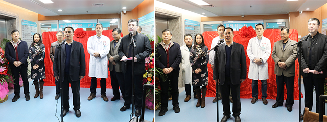 唐友明院长在致辞中代表医院领导班子和全院职工对胸心血管外科和泌尿外科新病区开业表示热烈祝贺。他指出,在龙学明老院长的英明谋划布局下,在高宏君教授、吴文森教授等前一代学科开创者的艰辛努力下,在杨柳山教授、梁泰生教授等新一代学科带头人的带领下,我院胸心血管外科和泌尿外科医务人员团结协作,大胆创新,已经发展成为在全区乃至全国都颇具实力和影响力的重要学科,呈现出了非常良好的发展态势。