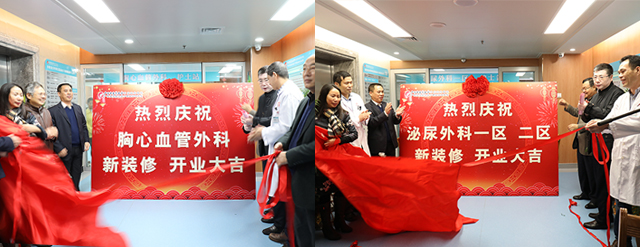 正值全国各地喜迎改革开放40周年,广西各族人民隆重庆祝自治区成立60周年之际,为不断改善就医环境,提高医疗卫生水平,落实“进一步改善医疗服务行动计划”,12月28日,位于我院B座20楼的胸心血管外科和10楼的泌尿外科经过近半年的精心装修升级,于当天上午分别举行装修后的开业仪式并正式投入使用。装修一新的新病区整体布局合理、医疗设备齐全、病房环境优美,将对患者的就医体验以及术后康复起到有效的促进作用。