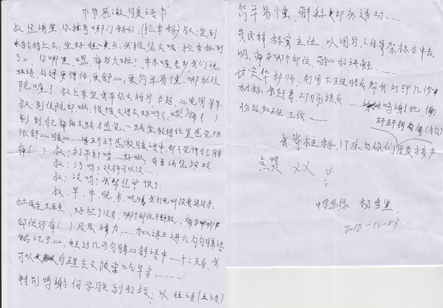 “以壮话讲病情,以图片、人体骨架标本表明疼痛的部位,层层接力,句句暖心……”,近日,来自扶绥县中东镇思同村枯樟屯贫困户、低保户杨秀坚写了一封感谢书,表达对空港院区骨科脊柱病区的黄民锋主任、何学胜副主任、杜柏林医师、王治海医师、杨海月护士长、甘定华护师等医护人员的感激之情。