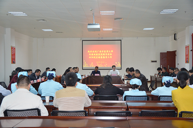1月31日,医院院长唐友明,党委书记高宏君,党委副书记、副院长陈日兰,副院长庞刚,纪委书记黄建民,副院长陈锋,广西中西医结合研究所所长龙学明带领相关部门负责人来到田阳院区,听取院区2018年发展情况汇报并举行座谈会,田阳院区执行院长龙驹、党支部书记甘照儒、副院长陆秀伟、陈威、张巍参加会议,甘照儒主持会议。