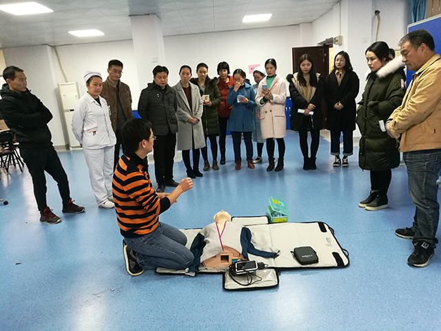 此次培训由获得全国心肺复苏及美国ASA认证的医院急诊科龚斌副主任及科室急救骨干医师授课及带教,重点对心肺复苏术进行了全面的理论讲授和操作规范培训,包括急救前的操作准备工作,操作者体位、判断患者意识、检测大动脉搏动,启动急救程序,放置复苏体位,心脏按压的部位、手法、幅度、频率,畅通气道的基本流程及人工呼吸的操作规范等方面。