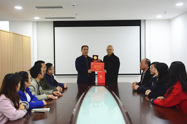最后,唐友明院长向我区引进的高层次人才李荣秀教授转交了中央代表团及自治区人民政府赠送的自治区60周年庆礼物,并合影留念。