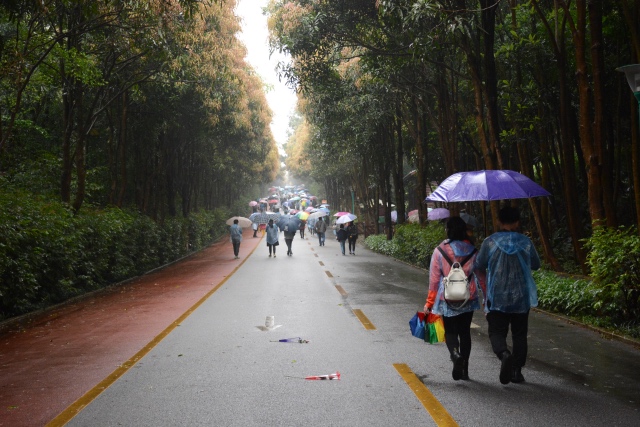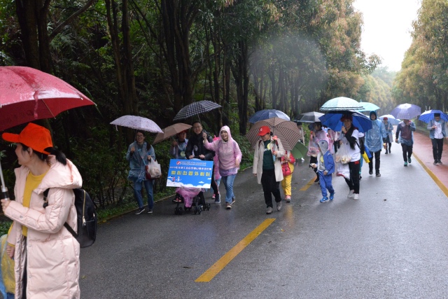 随后,唐友明院长宣布比赛开始,一声令下各参赛队员纷纷出发。在雨中,参赛队员们雨衣雨伞全副武装,不惧风雨,或一人领先冲锋陷阵,或拖家带口结伴而行,大家一边朝终点进发,一边欣赏秀丽的自然风光,一路上欢声笑语。
