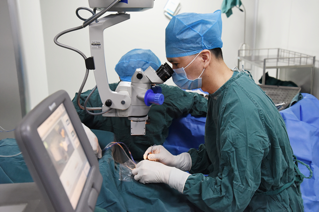 院领导听闻零有东的事情后,高度重视,当即指示相关科室要根据患者病情,制定诊疗方案,对精准扶贫对象实现“精准治病”。经过充分的准备工作,3月4日和3月7日,眼科唐勇华主任对其分别进行了“左眼后囊膜切开+前段玻璃体切割+二期人工晶体植入术”和“右眼后囊膜切开+前段玻切+悬吊人工晶体植入+眼内异物取出术”,手术非常成功。