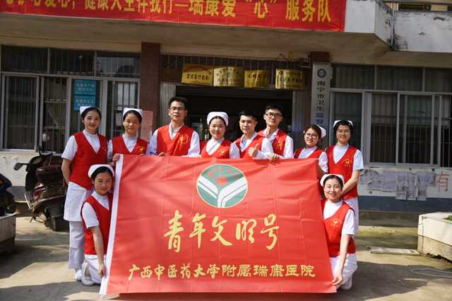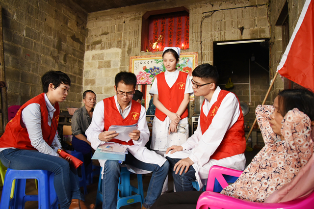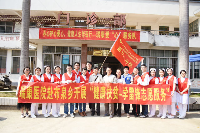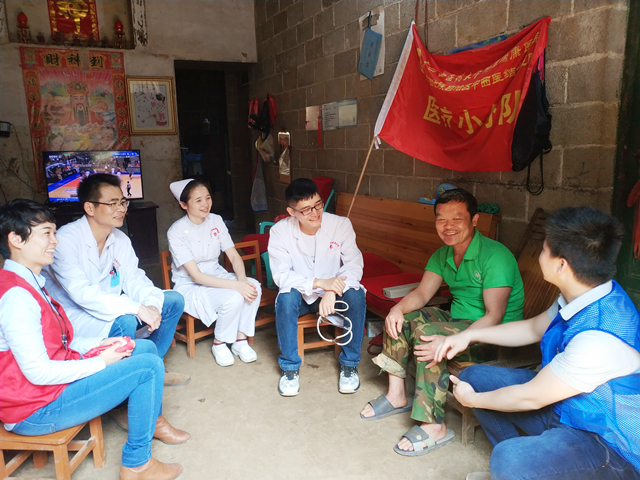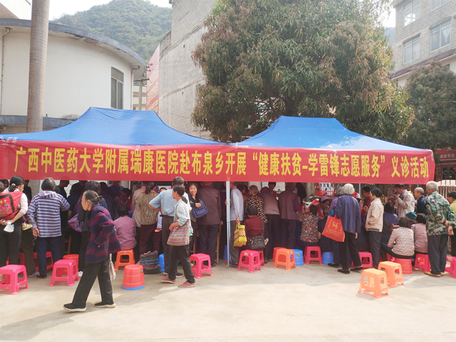 3月21日,为推进学雷锋志愿服务制度化、常态化,强化社会责任意识、奉献意识,将健康扶贫落实到人、精准到病,进一步推动广西健康扶贫工作。由我院内科第四党支部、心血管内科、骨脊柱外科、肿瘤科等支部和科室组成的多学科专家团队,在团委和医疗服务部组织下,走进隆安县布泉乡开展“健康扶贫-学雷锋志愿服务”活动,通过义诊及免费送药,利用医院中西医结合的优势,服务村镇居民。