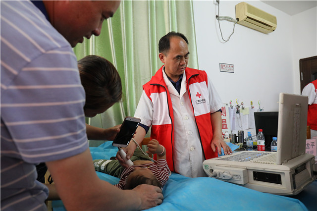 启动仪式后,范悦副主任为各乡镇卫生院医生及村医培训先天性心脏病筛查和诊断知识。活动当天,前来参加义诊的患儿及家属络绎不绝。我院“先心”筛查专家团队在现场有序地为每一位儿童检查,询问过往病史,帮助符合条件的患儿家庭申请慈善救助,获得了当地群众的一致好评。