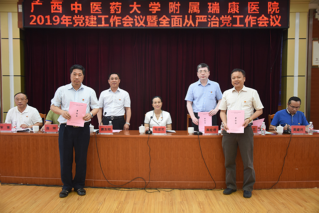 韦雪芳纪委书记最后表示,全面从严治党永远在路上,学校党委将一如既往的支持瑞康医院的各项工作,希望医院党委以党的政治建设为统领,坚持党要管党,全面从严治党,以扎实的党建工作带动和推进医院各项事业健康长足发展,让医院职工享受到医院事业发展带来的红利,让更多的群众享受到优质的中医药服务,以优异的成绩向新中国成立70周年献礼!