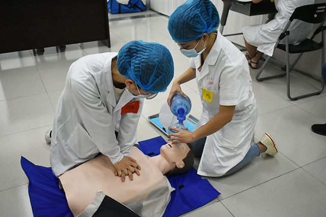 本次大赛设两个赛区,每个赛区均设置体格检查、外科、内科、急救、护理等基本技能相关的六大站点内容。比赛精彩激烈,选手们运用熟练扎实的基本功,完整而流畅地做好各项任务,在赛场上展现出了最亮眼的一面。最终, “刘昊然都对队”夺得了本次大赛的冠军,“医路前行队”等八支队伍分获二、三等奖。