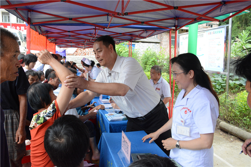为积极响应党和政府打赢脱贫攻坚战三年行动的号召,助力广西精准脱贫,近日,广西壮族自治区红十字会携手广西中医药大学附属瑞康医院,于南宁市隆安县屏山乡举办大型义诊活动。瑞康医院副院长陈锋带领老年病科、肝病内科、脊柱外科、胸心血管外科、关节与运动医学科、泌尿外科、儿科、药学部等多位资深专家以及医疗服务部相关负责人,利用自身中西医结合的优势,切实服务隆安人民,用实际行动弘扬“人道、博爱、奉献”的红十字精神。