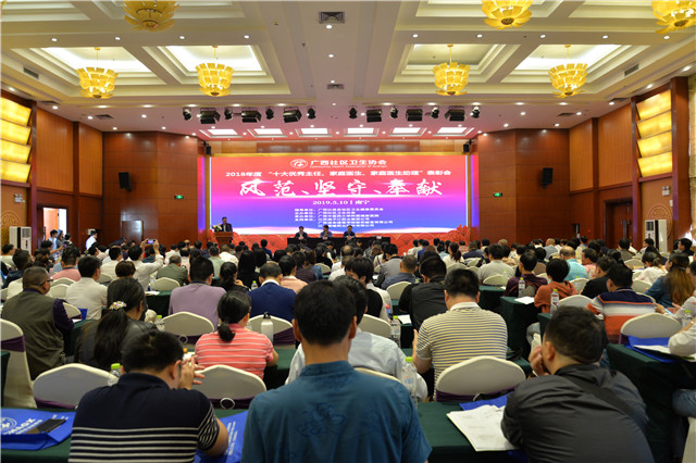 为持续提升基层医疗卫生机构服务能力,改善服务质量,5月10日,广西社区卫生协会在南宁天湖宾馆举办2018年度“十大优秀主任、家庭医生、家庭医生助理”表彰会暨“优质服务基层行”培训班。国家卫健委基层卫生健康司运行评价处陈凯处长、自治区卫健委基层卫生健康处刘德诚处长、广西社区卫生协会会长唐友明、执行会长韦思尊以及来自全区各市、县卫生计生部门、基层卫生机构以及区直各有关单位的270名代表参加了会议。