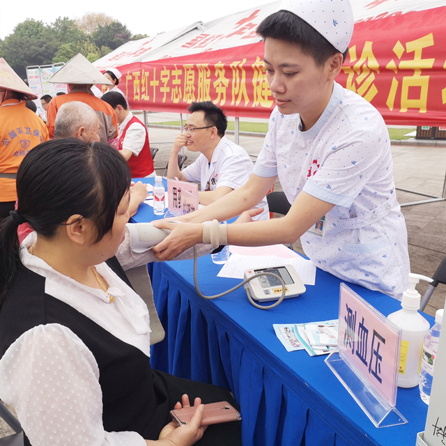 每年的5月8日是世界红十字日,为纪念第72个世界红十字日及第11个全国防灾减灾日。5月11日,我院应广西壮族自治区红十字会邀请走进南湖三月三欢歌广场参加世界红十字日纪念义诊,用实际行动弘扬“人道、博爱、奉献”的红十字精神。