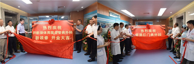 6月4日,我院肝胆腺体周围血管病外科、胃肠肛门病外科在医院B座19楼重装开业,重新装修后的病区焕然一新,于当天上午开业仪式后正式投入使用。医院院长唐友明,党委书记高宏君,副院长庞刚、韦思尊、陈锋、宋策出席开业仪式。肝胆腺体周围血管病外科主任韦杨年、胃肠肛门病外科主任韦建宝等科室负责人以及相关部门人员参加仪式。高宏君书记主持仪式。