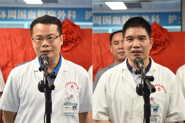 随后,肝胆腺体周围血管病外科主任韦杨年、胃肠肛门病外科主任韦建宝做表态性发言。