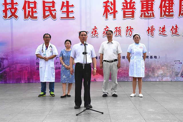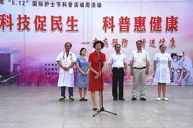 5月17日上午,由我院主办,广西护理学会协办的“5.12”国际护士节科普活动之“科技促民生 科普惠健康”大型义诊活动在南宁市友爱广场举行。广西护理学会理事长杨连招,副理事长胡艳宁,我院院长唐友明、副院长陈锋,北湖南棉社区卫生服务中心主任郑茂斌及医院50多位医疗护理专家参加本次活动。