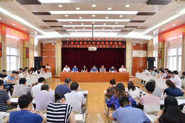6月6日下午,我院党委召开2019年第三次党委理论学习中心组(扩大)会议。医院党委书记高宏君,院长唐友明,党委副书记、副院长陈日兰,副院长庞刚,纪委书记黄建民,副院长陈锋、宋策,医院党委理论学习中心组成员,各党(总)支部书记及支委代表参加会议。会议由党委书记高宏君主持。