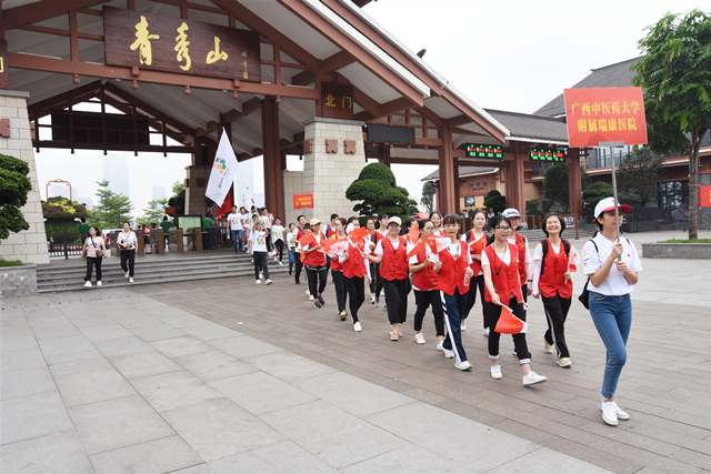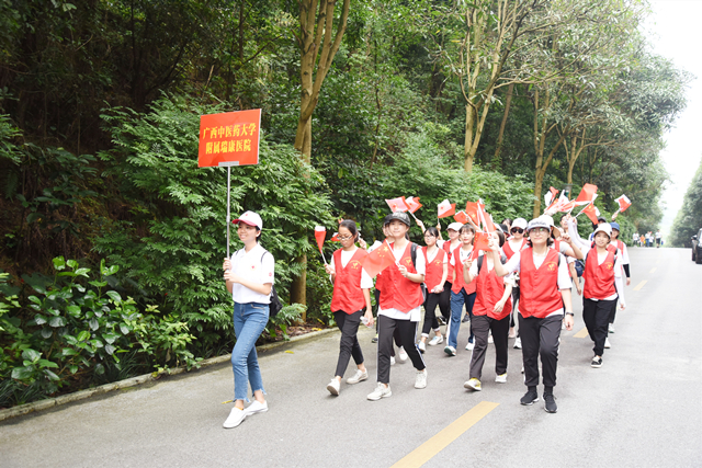 启动仪式上,自治区卫生健康委员会党组成员、副主任麦家志致辞,自治区红十字会党组成员、副会长兼秘书长吴强宣读倡议书,自治区红十字会党组书记、常务副会长冯国平授旗南宁市无偿献血形象大使、中国男子篮球职业联赛八一中队中锋许钟豪后宣布活动开始。自治区红十字会机关党支部、部份在邕医疗机构、乐达传媒集团、广西金盾之光爱心志愿者协会、广西八桂义工协会、南宁市中心血站等25个单位的志愿者以及社会爱心人士1200多人组成40多支方块队参与健步走活动。一路上,浩浩荡荡的队伍宛若长龙,绵延在健身步道,我院的爱心小马甲队伍形成一道靓丽的风景线,与美丽的邕城绿肺交相呼应。行走过程中,大家精神饱满、热情高涨,边走边聊,呼吸着清新空气,欣赏着美丽景色,感受着健步走带来的快乐。