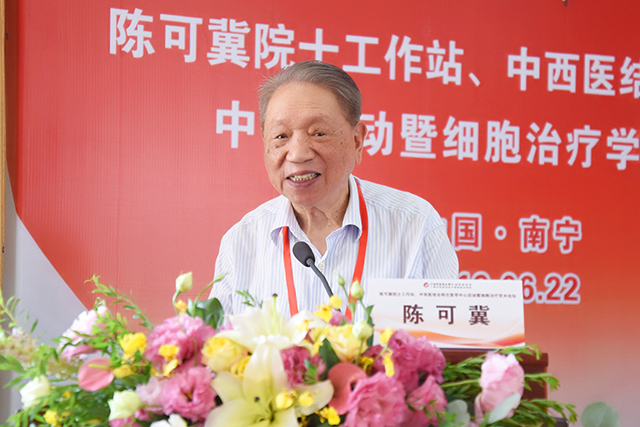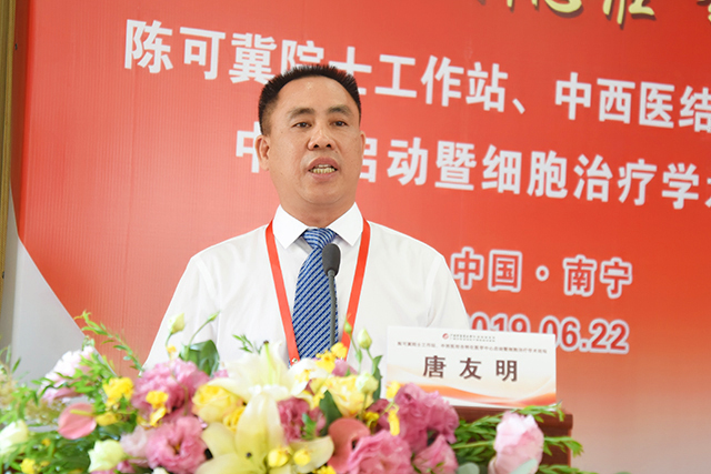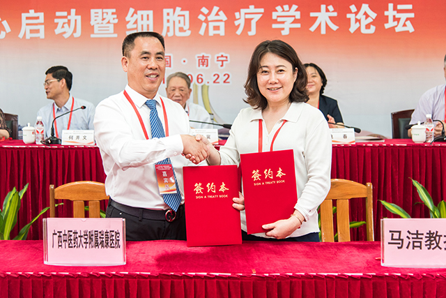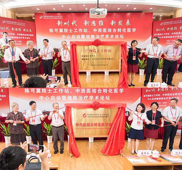 习近平总书记话音刚落,广西医疗卫生事业在传统医学和角逐医学前沿研究领域就迎来了重大突破。6月22日上午,广西中医药大学附属瑞康医院在B座十楼报告厅隆重举行陈可冀院士工作站、中西医结合转化医学中心启动仪式暨细胞治疗学术论坛。经陈可冀院士同意,广西壮族自治区科技厅批准,我院成功引进陈可冀院士团队建设广西中西医结合陈可冀院士工作站,通过咨询指导、项目合作、人才培养、成果转化等方式,引领、促进医院科学研究、学科建设、临床诊疗等工作发展。此外,经过了近一年半的精心筹备,在与北京医院生物治疗中心主任马洁教授高层次团队成功签约之后,位于我院A座27楼的中西医结合转化医学中心也终于揭开面纱走到台前,这标志着我院聚焦转化医学前沿,在努力打造中西医转化医学研究平台的道路上又迈出了坚实的一步。
