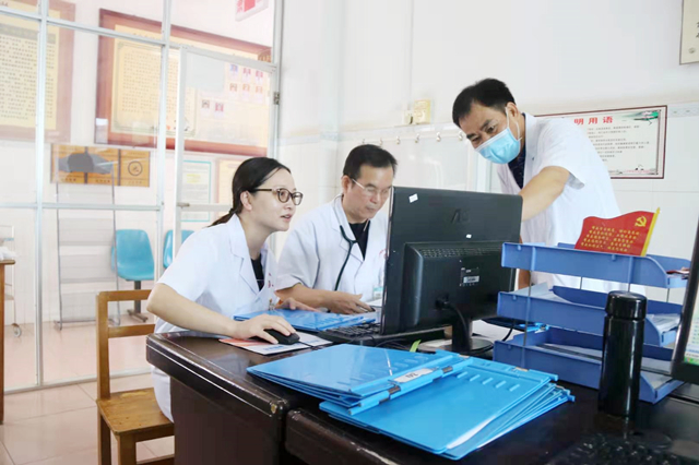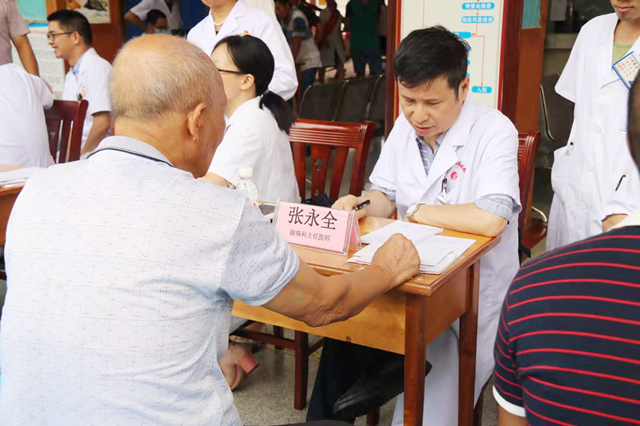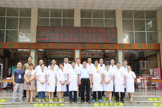 为进一步贯彻落实党的十九大精神,积极推动支部健康帮扶工作,发挥党支部的战斗堡垒作用和共产党员的先锋模范作用,7月25日上午,我院内科党总支党员医生走进平果县,与“友好基层党组织”平果县中医医院党支部开展联合义诊活动。