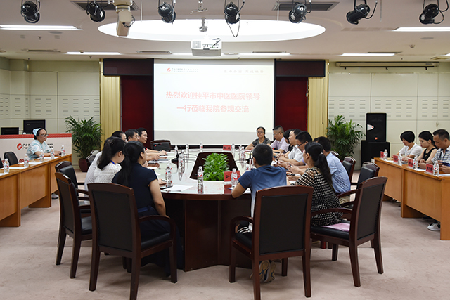 7月31日上午,桂平市中医医院伦庆义副院长带领该院党办、院办、医务科、急诊科、护理部、手术室等科室负责人来到我院,参观学习党务建设、医务、护理、质控、重点专科、急诊绿色通道等方面的经验和做法。我院副院长韦思尊带领相关科室负责人热情接待。