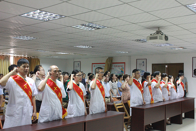 院区党总支副书记、副院长黄建东带领全体医务人员诵读医学生誓词,“健康所系、性命相托!当我步入神圣医学学府的时刻,谨庄严宣誓:我志愿献身医学……为祖国医药卫生事业的发展和人类身心健康奋斗终身!”全体医务人员铿锵诵读,精神振奋,气势激昂。