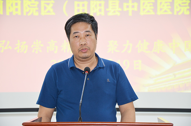 龙驹在表彰大会上致辞,他首先代表田阳院区领导班子,向长年奋战在临床一线的全体医师同仁们致以诚挚的问候,向获得表彰的优秀医师表示热烈的祝贺。他说,我们举办这次活动的目的就是不断激发广大医务人员的职业荣誉感和神圣使命,切实践行“敬佑生命、救死扶伤、甘于奉献、大爱无疆”的崇高精神,同时也是为了鼓励广大医师学习典型,争先创优,努力提高医院服务水平,增强责任感与使命感,以崭新的姿态、饱满的热情,为推进田阳院区的发展尽心竭力,尽职尽责。
