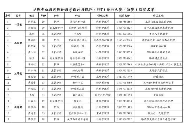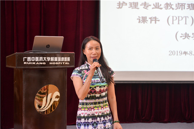 为了提升我院广大护理专业教师课件制作的水平,充分展现我院护理教师爱岗敬业的精神风貌,为我院护理教学人才脱颖而出搭建一个良好的平台,在第35个教师节即将来临之际,我院护理部举办全院护理专业教师理论教学设计与课件(PPT)制作大赛,8月28日,大赛决赛在医院B座10楼报告厅圆满举办。医院院长唐友明,党委副书记、副院长陈日兰到场观摩,同时大赛邀请到广西中医药大学教务处处长莫雪妮、教师教学发展中心常务副主任朱珠、现代教育技术与信息中心副主任罗俊,我院院长助理、重症医学科兼重症一病区主任伍民生,教务科副科长姜俊玲,护理部副主任钟美容、秦明芳作为评委出席大赛。