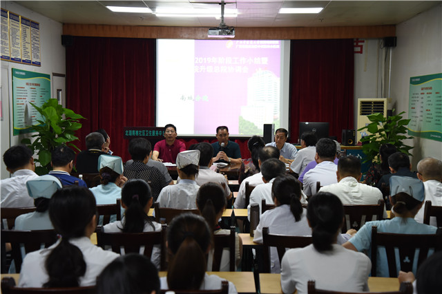 针对中心目前发展的现状以及申报社区医院建设试点机构所必备的条件,南城分院院长郑茂斌和社区卫生服务中心主任伍世轰进行了介绍和解读,并就目前所面临的和需要解决的问题和困难进行汇报。