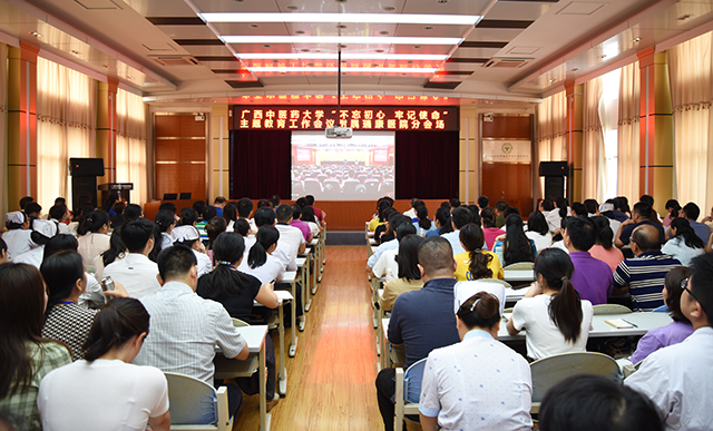 学校在家校领导、党委委员、纪委委员,部分老领导,学校党员干部,学校主题教育指导组成员,全校党支部书记,全校辅导员,民主党派负责人等共500余人参加会议。同时,仙葫校区大学生活动中心、明秀校区、第一附属医院、附属瑞康医院、附属国际壮医医院、制药厂设立分会场,近两千名师生观看大会同步直播。