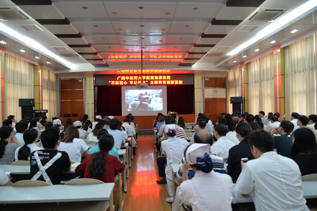 根据“不忘初心、牢记使命”主题教育学习工作安排,10月16日,我院组织在B座10楼教室观看广西革命历史题材电影《血战湘江》。医院党委书记高宏君,纪委书记黄建民,院本部各党总支、党支部书记及支委,规培生、实习生党员代表参加观影活动。