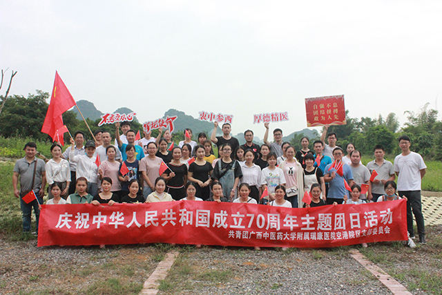 为庆祝新中国成立70周年,真切表达空港院区全体团员的爱国主义情怀,10月16日下午,共青团空港院区支部50多名团员在扶绥县金猴湾拓展训练基地,开展“庆祝中华人民共和国成立70周年主题团日活动”。空港院区党总支书记林宗汉,党总支宣传委员、副院长朱志华出席活动。活动由院区团支部书记李丽平主持。