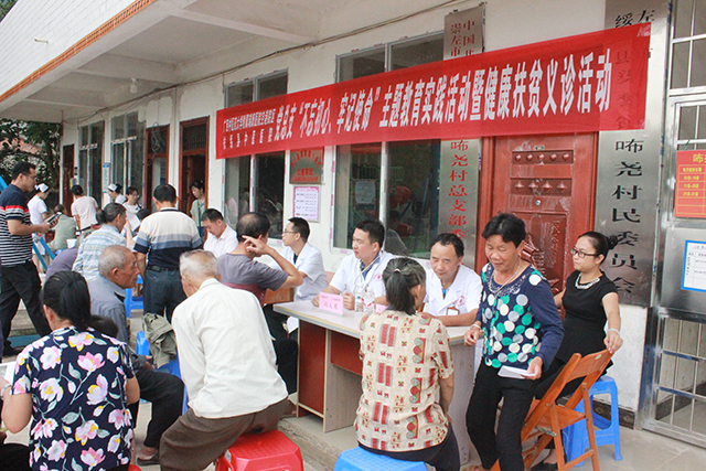 上午9时,院区党员医疗服务队及扶贫工作队员一行16人,在空港院区党总支副书记、副院长黄建东带领下来到咘尧村为村民义诊。义诊现场,询病情、做检查、查症状、开处方、做治疗等工作紧张有序地进行,就诊人群络绎不绝,活动持续到中午12点。