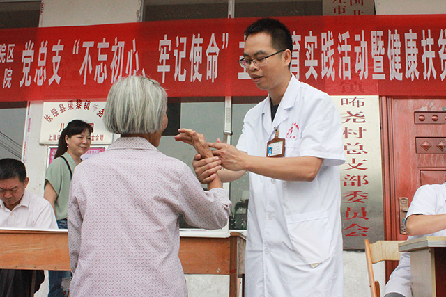 为了扎实开展“不忘初心、牢记使命”主题教育,落实健康中国战略,助力健康扶贫,在第六个国家扶贫日到来之际,10月17日,空港院区党总支党员医疗服务队及扶贫工作组成员到挂点帮扶渠黎镇咘尧村开展“不忘初心、牢记使命”主题教育实践活动暨健康扶贫义诊。