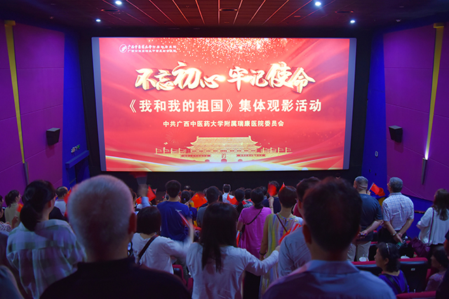 为弘扬爱国主义精神,激发党员干部职工的爱国热情和民族自豪感,结合“不忘初心、牢记使命”主题教育的部署安排,10月20日下午,我院党委组织140余名党员代表来到万达影城共同观看新中国成立七十周年荧幕巨献《我和我的祖国》。医院党委书记高宏君,副院长韦思尊,纪委书记黄建民,副院长陈锋、宋策参加活动。