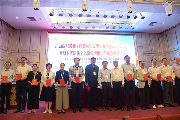 10月17日-19日,2019年广西医院协会医院文化建设专业委员会换届改选大会暨2019年新时代医院文化建设传承与创新学术研讨班在贵港召开。广西区内外从事医院文化建设与研究领域的知名专家、医院代表200余人共聚一堂。我院党委书记高宏君、纪委书记黄建民以及党委办公室负责人等一行参加本次会议。