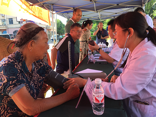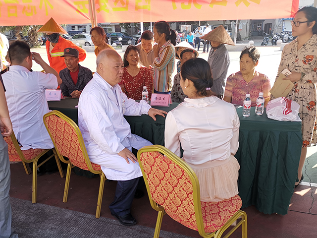 我院医疗团队在义诊活动中为当地100多名老百姓和侨眷进行医疗诊治,并耐心解答他们的咨询,医疗团队认真负责的态度、精湛的医疗技术深受当地患者的欢迎。