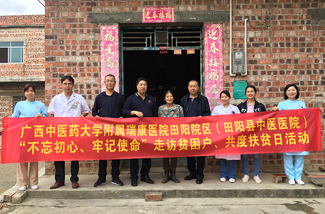 为深入贯彻落实习近平总书记关于扶贫工作的重要论述,扎实推进精准扶贫、精准脱贫,结合“不忘初心、牢记使命”主题教育安排,10月23日上午,田阳院区组织开展“不忘初心、牢记使命”走访贫困户、共度扶贫日活动。