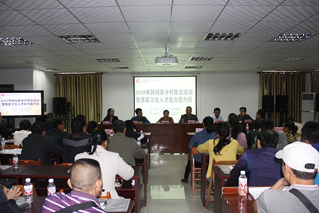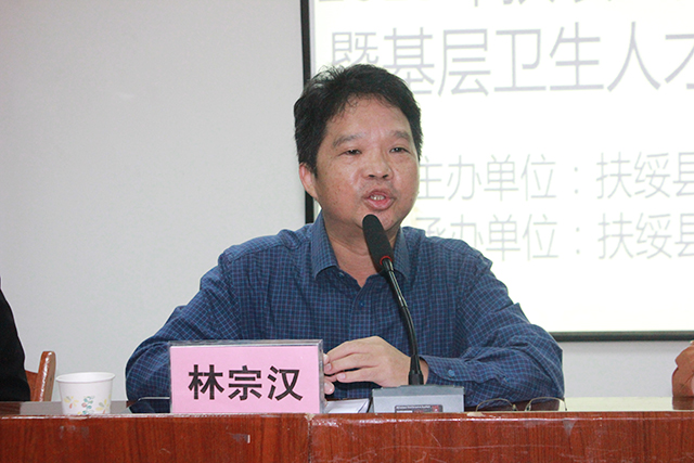 为提高扶绥县乡村医生以及基层医疗卫生机构服务能力和水平,增强群众的获得感和对基层医疗卫生服务的满意度,实现群众看病首诊在基层的目标,10月25日,由扶绥县卫健局主办、空港院区承办的“2019年扶绥县乡村医生培训暨基层卫生人才能力提升班”在院区二楼会议室举行。扶绥县卫健局副局长李艳阳、空港院区执行院长梁春才、党总支书记林宗汉、副院长黄建东出席培训班开班仪式,我院针灸科主任、针灸学教研室主任朱英、儿科主任梁文旺应邀出席培训班并授课。全县各乡镇卫生院医务人员及乡村医生共180人参加了培训,培训班由林宗汉主持。