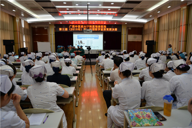 为加强我院护理临床实践教学水平,提高教学能力和护理人才培养质量,提高临床护理教学人员精诚协作的团队精神和教学查房工作中的组织、规划及设计能力,10月23日至24日,由我院护理部组织举办的第三届(2019年)临床护理教学查房竞赛在B座10楼教室举行,本次竞赛以“不忘初心、牢记使命,立足本职、追求卓越”为主题,共有37个临床科室积极参与。10月24日上午,临床护理教学查房决赛正式拉开帷幕,医院党委书记高宏君,党委副书记、副院长陈日兰,副院长陈锋前来观摩指导比赛。