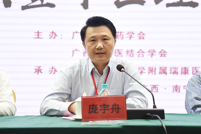 庞宇舟在开幕式致辞中代表学校对本次大会的召开表示祝贺,他指出,习近平总书记近日对中医药工作作出重要指示,强调要遵循中医药发展规律,传承精华,守正创新,加快推进中医药现代化、产业化,坚持中西医并重,推动中医药和西医药相互补充、协调发展,充分发挥中医药防病治病的独特优势和作用。经典和经方是中医最重要的精华,需要广大中医药工作者进行深入研究、传承、应用和推广,坚守正道,努力创新,进一步彰显中医药的特色优势,造福患者,为广西乃至全国的医疗卫生事业作出贡献。