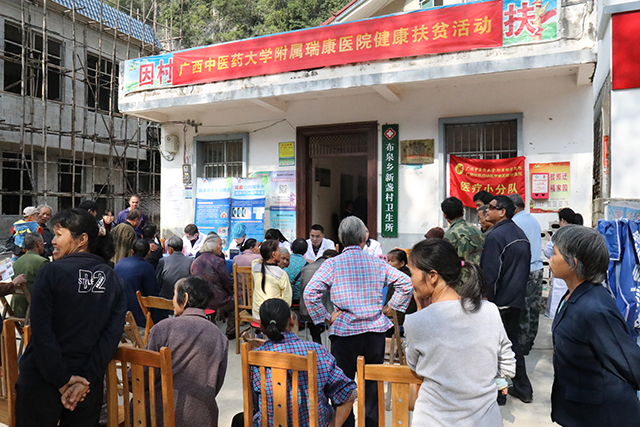广西中医药大学以及附属瑞康医院作为后援单位,积极响应国家关于“健康扶贫”号召,发挥自身医疗特色服务优势开展精准帮扶,减少和避免群众因病致贫、返贫,精准发力,扎实做好健康扶贫,巩固拓展脱贫攻坚成果。