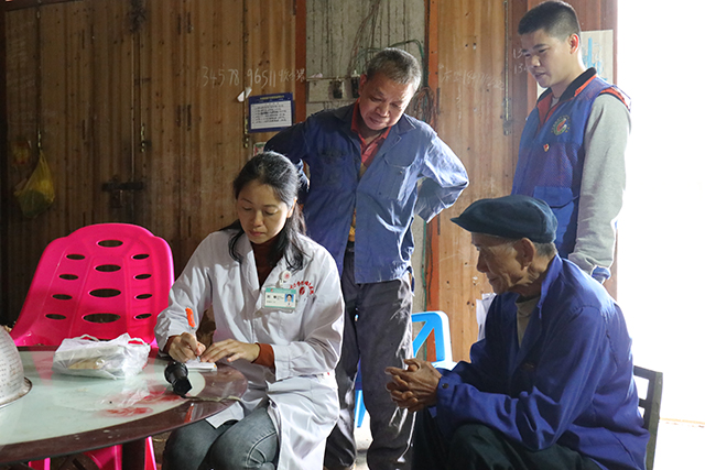 党的十八大以后,全国吹响了脱贫攻坚战的冲锋号,根据自治区的统一安排部署,2018年,广西中医药大学选派附属瑞康医院药物研发中心的李金荣到隆安县布泉乡新盏村担任第一书记。“因病致贫、因病返贫”是隆安县布泉乡贫困的主要因素之一,李书记充分发挥了背靠单位医疗资源优势,在学校和医院党委的指导和支持下,医院多次带队前往布泉乡,开展“不忘初心、牢记使命”健康扶贫义诊活动,送医送药上门,精准帮扶助30年眼疾老乡重见光明……不忘带领村民攻坚脱贫的初心、牢记驻村第一书记使命。驻村第一书记,既是光荣,也是使命,更是担当。