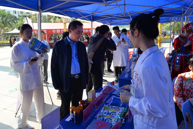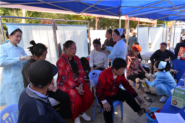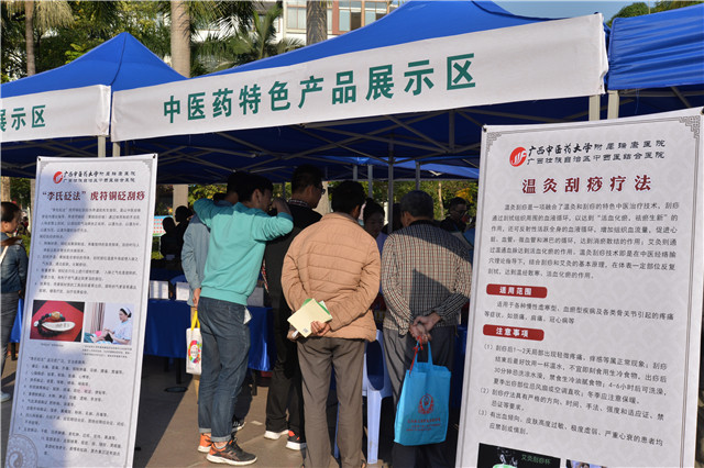 活动包含 70 年中医药成就展览、健康咨询(义诊)、中医药诊疗技术体验、中医药文化产品展览、中医药文化表演、中医药文化宣传品发放、科普宣传、互动体验等内容。我院专家为巴马市民义诊、做健康咨询,现场提供推拿、拔罐、针灸、刮痧等中医药特色诊疗体验,同时还展示了富有我院特色的各类院内制剂。