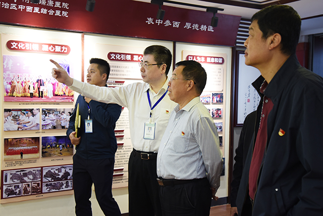 指导组一行先后来到国医大师馆、院史馆、治未病中心、国医堂参观调研,对我院浓郁的中医药文化、深厚的学术底蕴以及特色的中西医结合诊疗服务表示赞赏,也在简便就医流程、提升患者满意度等方面与学校、医院领导进行交流探讨。