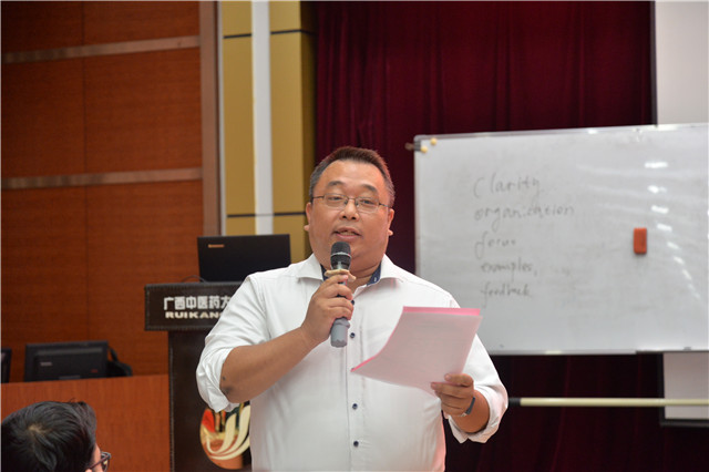 对于此次全英文教学比赛,医院领导高度重视,在赛前对比赛方案和的筹备工作做出了具体指导。比赛邀请到广西中医药大学外语部副主任周锋、国际教育学院学生工作办公室主任陈斌、我院五官科学教研室主任李淑琳以及广西中医药大学第一附属医院肝病科教授余晶担任评委。为增强英文课堂互动效果,体现全英文教学特色,本次比赛邀请了5名外籍留学生及2名研究生作为互动学生代表参加现场教学。