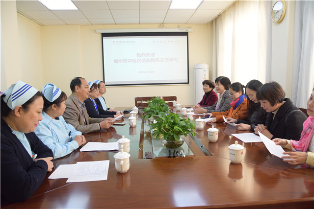 12月4日,福州市中医院护理部主任黄兰珍一行6人来到我院交流学习中医护理特色技术,受到我院副院长陈锋、护理部主任龙秀红及相关人员热情接待。