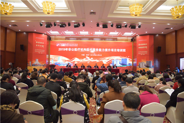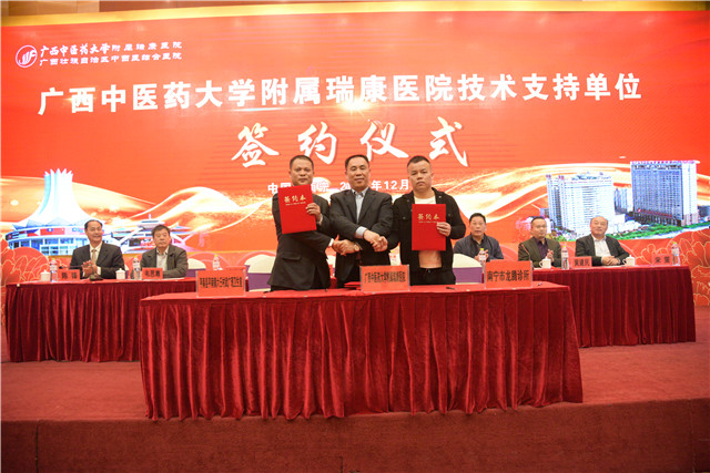 为贯彻《国务院办公厅关于支持社会力量提供多层次多样化医疗服务的意见》精神,践行习近平总书记在十九大报告中提出关于“支持社会办医,发展健康产业”重要讲话精神,加强基层医疗卫生服务能力,助力行业人才培养与发展。12月6日-7日,由广西社区卫生协会和我院共同举办的广西非公优秀医疗机构(含民营医疗机构及个体诊所)医疗服务能力提升培训暨技术支持单位授牌会议在南宁举行。自治区中医药管理局副局长黎甲文,我院院长、广西社区卫生协会会长唐友明,副院长庞刚、韦思尊,纪委书记黄建民,副院长陈锋、宋策以及广西中西医结合研究所所长龙学明出席会议,来自全区14个地市200多位学员参加会议。