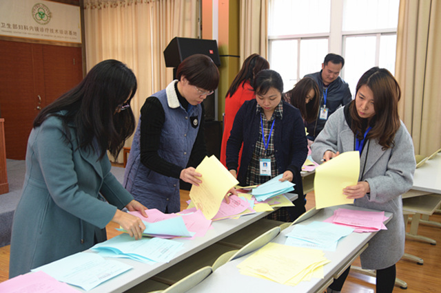 讨论结束后,监票人对现场到会代表人数进行清点,然后通过无记名投票方式对三项议案进行了表决。经过严格的投票、计票及监票程序,会议原则上通过了建设凤岭南医院、购置一台CT模拟定位机及医院2020年预算编制情况的议案。